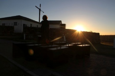 Three Days was performed at Fort Selwyn in Grahamstown. In many of Hartzenberg’s works the suitcase, a symbol of transience, alludes to the impossibility of arrival and the denial of a settled destination. Suitcases, or suitcase-like structures appear in works such as Unplugged (1993) from the Domestic Baggage series, the Salt Theatre installation (1996), Salt and Time (1997), Road Zero (1997) and the Three Days installation (2012 and 2013).