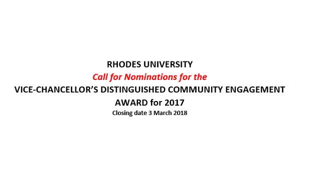 Call for Nominations for the VICE-CHANCELLOR’S DISTINGUISHED COMMUNITY ENGAGEMENT AWARD for 2017