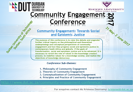 The Rhodes University Community Engagement Division and the Durban University of Technology, in partnership with the Common Good First project, invite you to a Symposium on Community Engagement and Social Innovation to be held at Rhodes University in Grahamstown, South Africa.