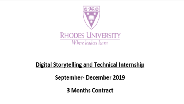 As part of the Common Good First Digital Storytelling initiative applications are invited from suitably qualified candidates for the following post from 1 September 2019 to 31st December 2019. (Full time (8h00-16h30)).