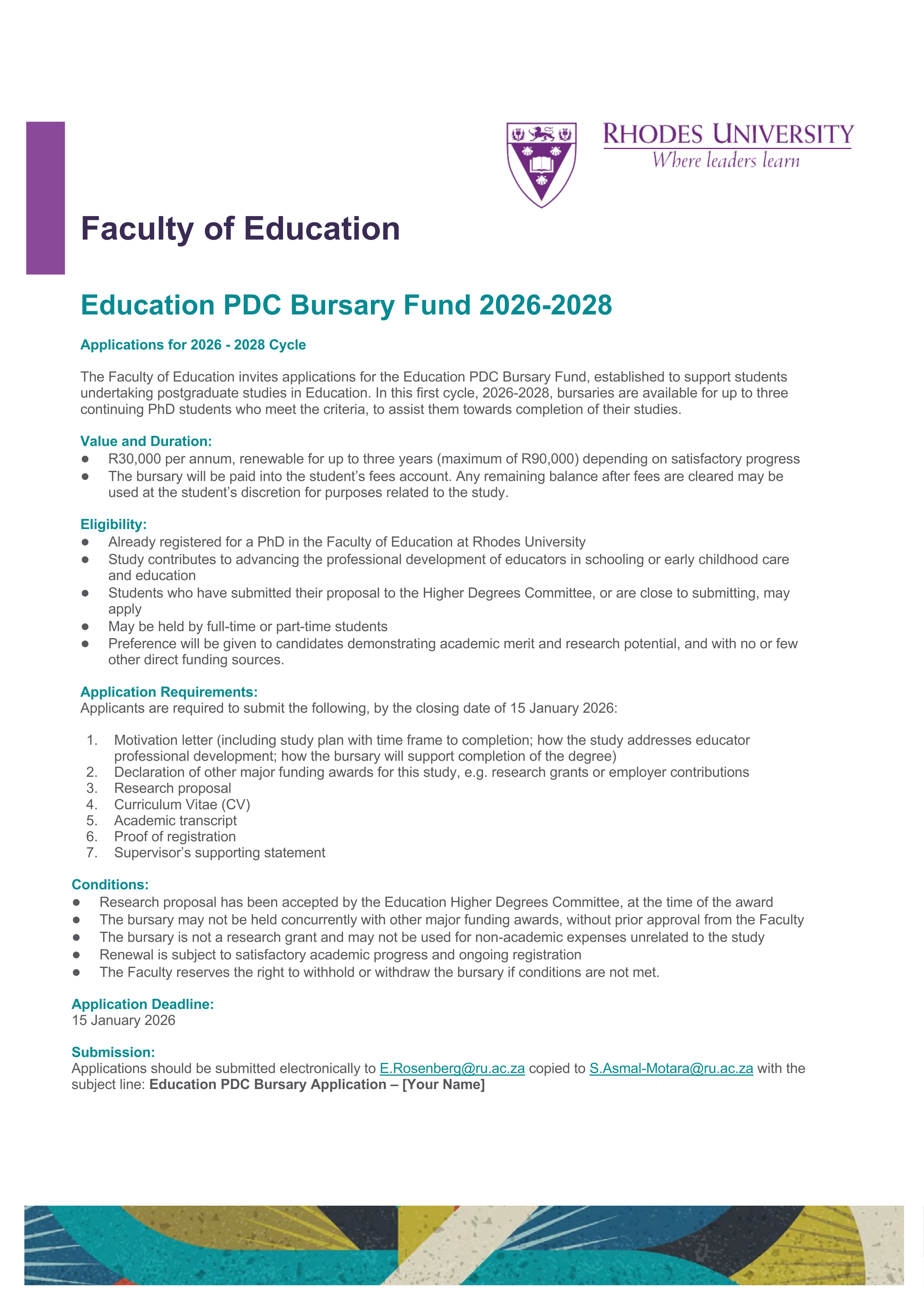 Our Faculty offers a range of qualifications within and across four broad education sectors, namely higher education, schooling, early childhood and post-school education, training and development practices. This is offered in three departments and several affiliated centres and institutes.