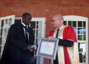 Mr Ngoni Mugandiwa receives the Terence Beard Prize for the Best Student in Political and International Studies of 2012 from the Head of Department, Professor Paul-Henri Bischoff.