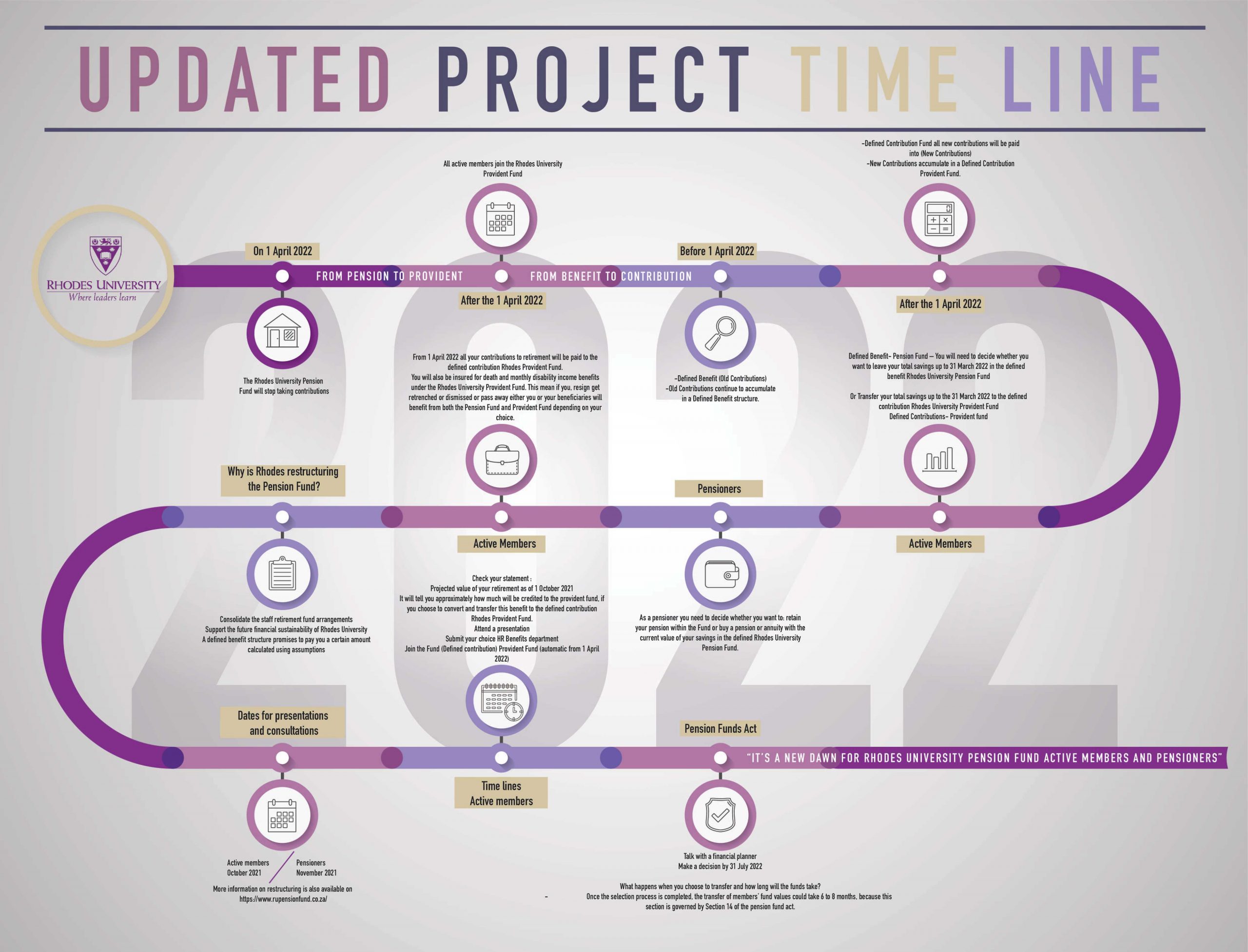 We will for the duration of the project be creating infographics to visually illustrate the process aiding members and pensioners in their understanding of the restructuring process and helping inform them in making decisions about their pension planning.