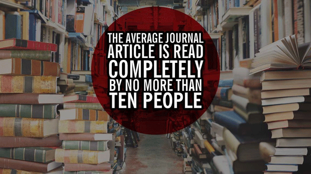 Instead, their work is largely sitting in academic journals that are read almost exclusively by their peers. Biswas and Kirchherr estimate that an average journal article is “read completely by no more than ten people”.